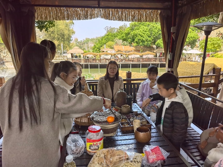活动当天,,,,女职工们褪去职场的干练,,,身着舒适穿搭,,陆续抵达慢生活馆。。。。暖融融的阳光下,,,茶桌整齐排布,,,炭炉微红,,,,茶壶静置于炉上,,旁边整齐摆放着橘子、、、、红枣、、年糕、、、花生等烤物,,,,搭配精致茶点与山间清风,,,,氛围感瞬间拉满。。大家围炉而坐,,,摆弄炭火、、、添煮茶水,,看着茶汤在炉火上慢慢翻滚、、氤氲出阵阵茶香,,,烤物的焦香也随之弥漫开来,,烟火气与幸福感交织在一起。。。。